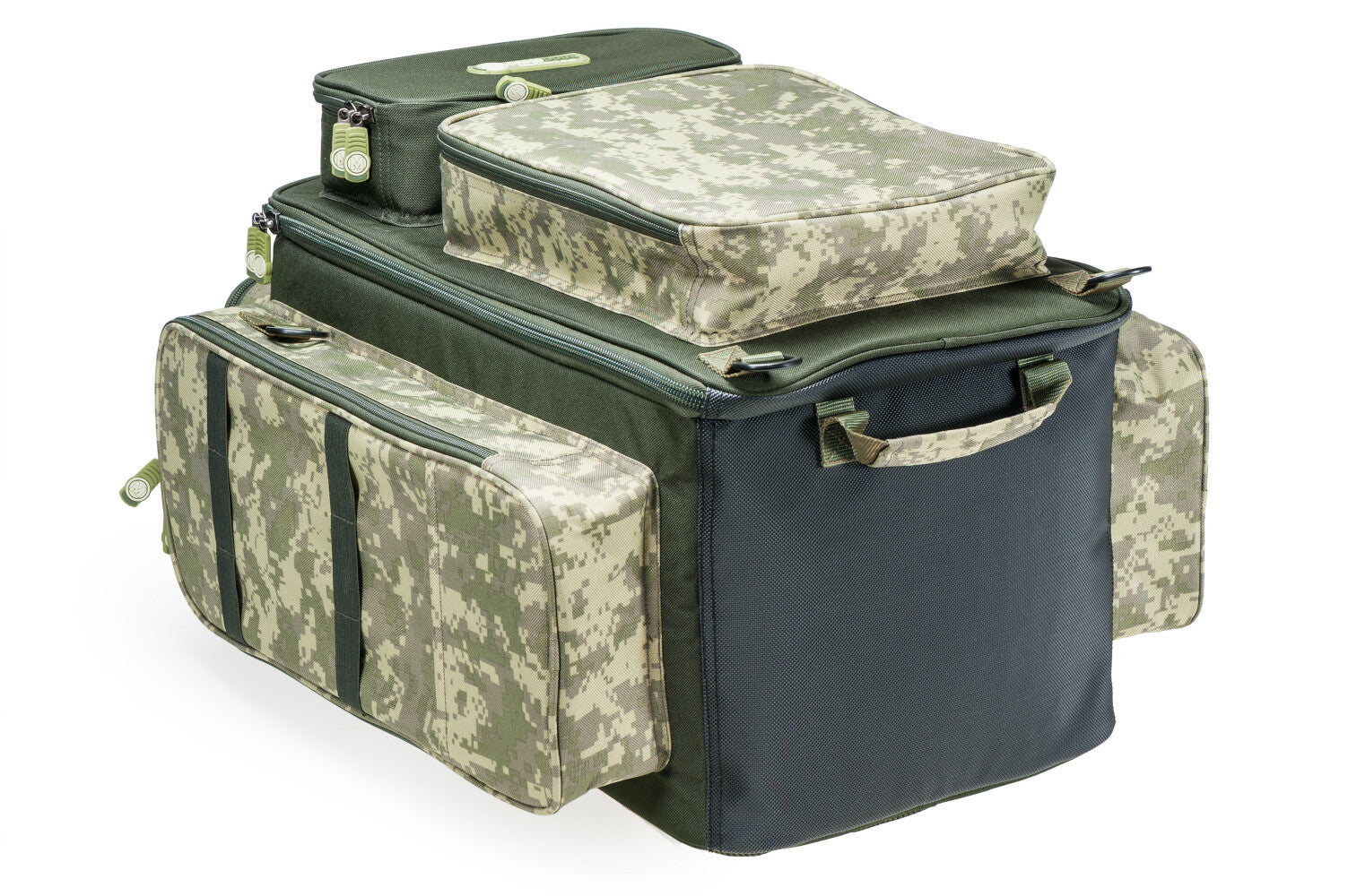 Ein solider, robuster Rucksack mit vielen Features, gestaltet in unserem CamoCODE Design. Das Hauptfach mit dem geformten Boden ist von oben oder von der Seite zugänglich, dank eines Reißverschlusses in der Mitte des Rucksacks. Die zusätzlichen Außentaschen zur Aufbewahrung von Zubehör bieten viel Stauraum und schnellen Zugriff auf die darin befindlichen Gegenstände. Die einzigartig geformten Träger und der Rückengurt tragen zusammen mit einem belüfteten und gepolsterten Rückenbereich dazu bei, Wärme abzuleiten und den Komfort beim Tragen zu erhöhen. Alle Reißverschlüsse sind von langlebiger und robuster Qualität. Aufgrund seiner kompakten Größen und Abmessungen kann er einfach und bequem unter einem Bedchair verstaut werden. Dadurch das sich an der Ober- und Unterseite Tragegriffe befinden, kann er auch in vollgepacktem Zustand einfach und kontrolliert gezogen oder quer getragen werden. Dies ist sehr nützlich beim Be- und Entladen des Autos oder des Trolleys.