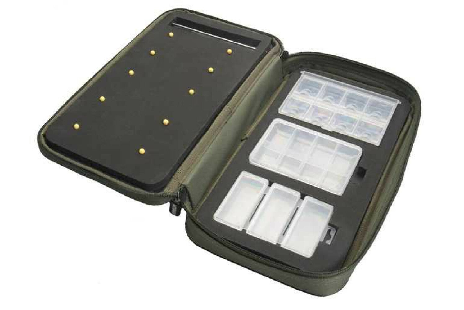 Praktische Aufbewahrungstasche für Montagen & Kleinteile. Modell S umfasst drei Standard-Boxen für kleines Zubehör und ein Board für Ihre Rigs.