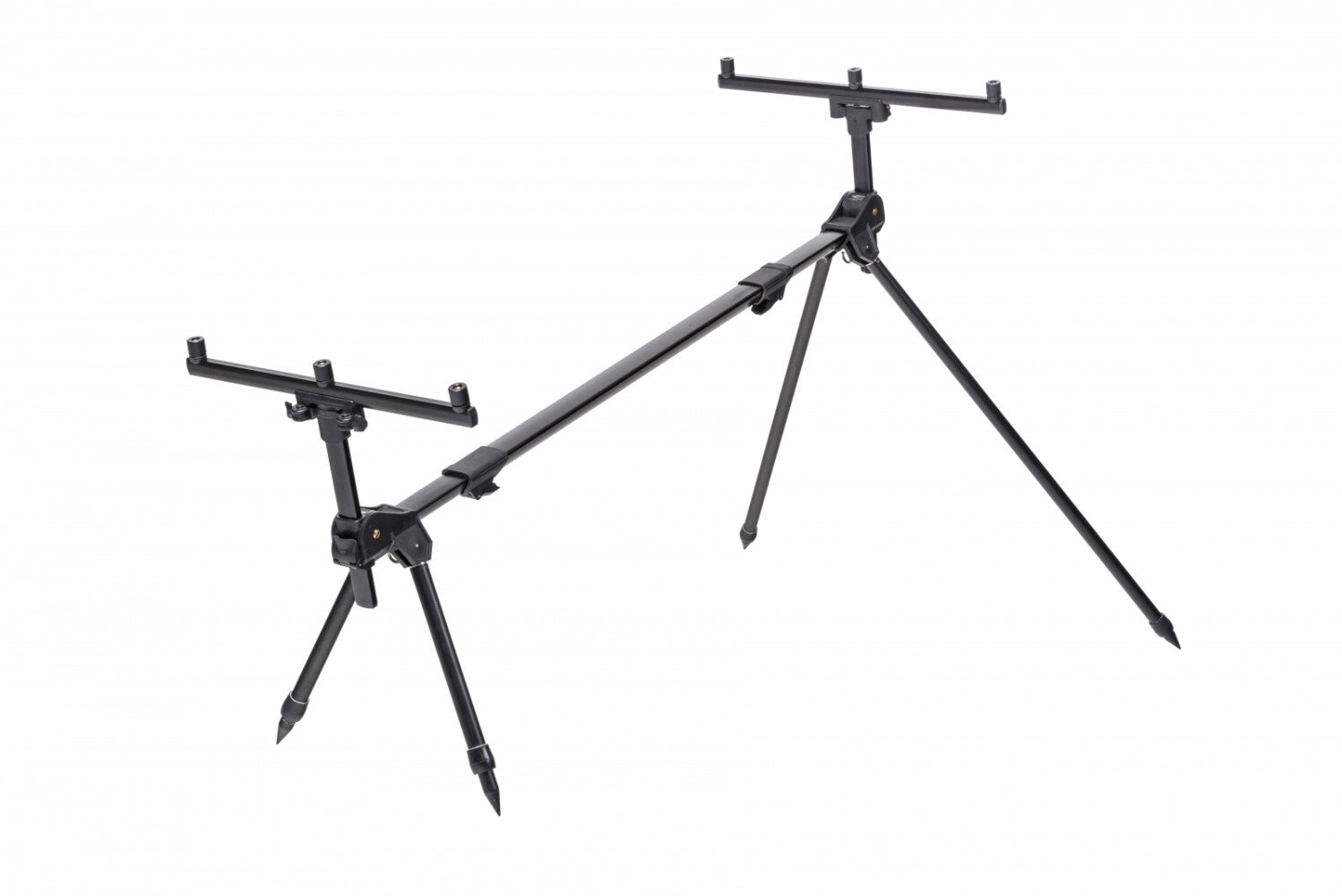 Standfestes und flexibel einstellbares Rodpod für 3 Ruten. Der verstellbare Mittelsteg erlaubt ein schnelles, einfaches und individuelles Anpassen an unterschiedliche Rutenlängen. Die Beine sind stufenlos höhenverstellbar und bieten eine flexible Anpassung an das Ufergelände, ihre Ausrichtung kann ebenfalls variiert werden. Die BuzzerBars sind ebenfalls höhenverstellbar. Im Lieferumfang ist eine hochwertige Transporttasche sowie insgesamt 3 Beinpaare in unterschiedlichen Längen enthalten.